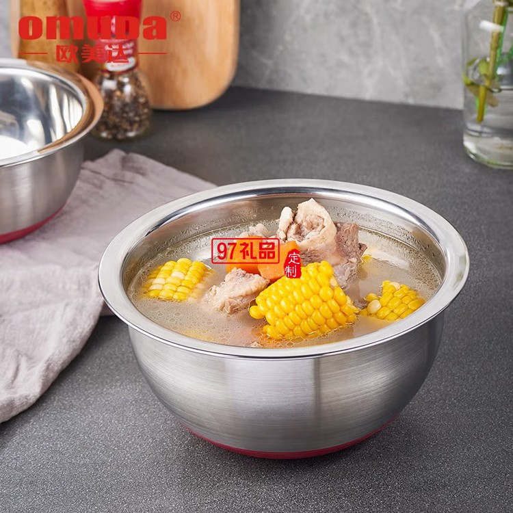 歐美達(dá)食品級(jí)不銹鋼盆廚房盆子大湯盆 3件套定制公司廣告禮品