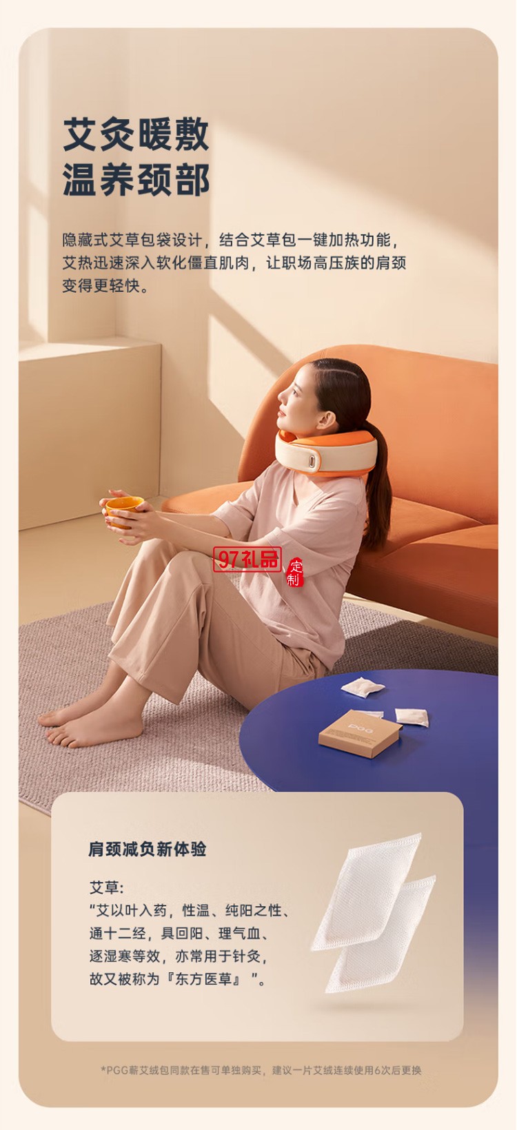PGG頸椎按摩器熱敷頸部按摩儀按摩U型枕M1智能款定制公司廣告禮品