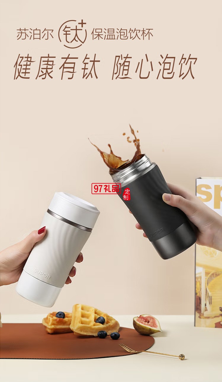 蘇泊爾保溫杯鈦+保溫泡飲杯泡茶杯KC36FY10定制公司廣告禮品