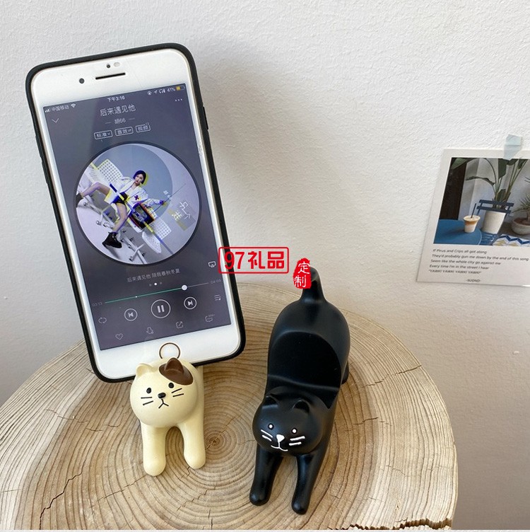 日式卡卡通貓咪手機支架桌面擺件