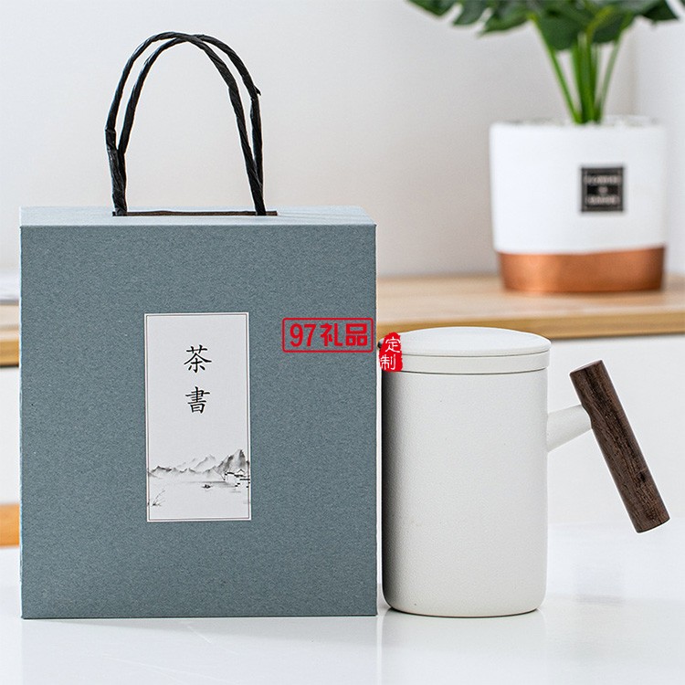 新品陶瓷馬克杯泡茶杯單杯過(guò)濾大容量木柄辦公杯 可定制logo