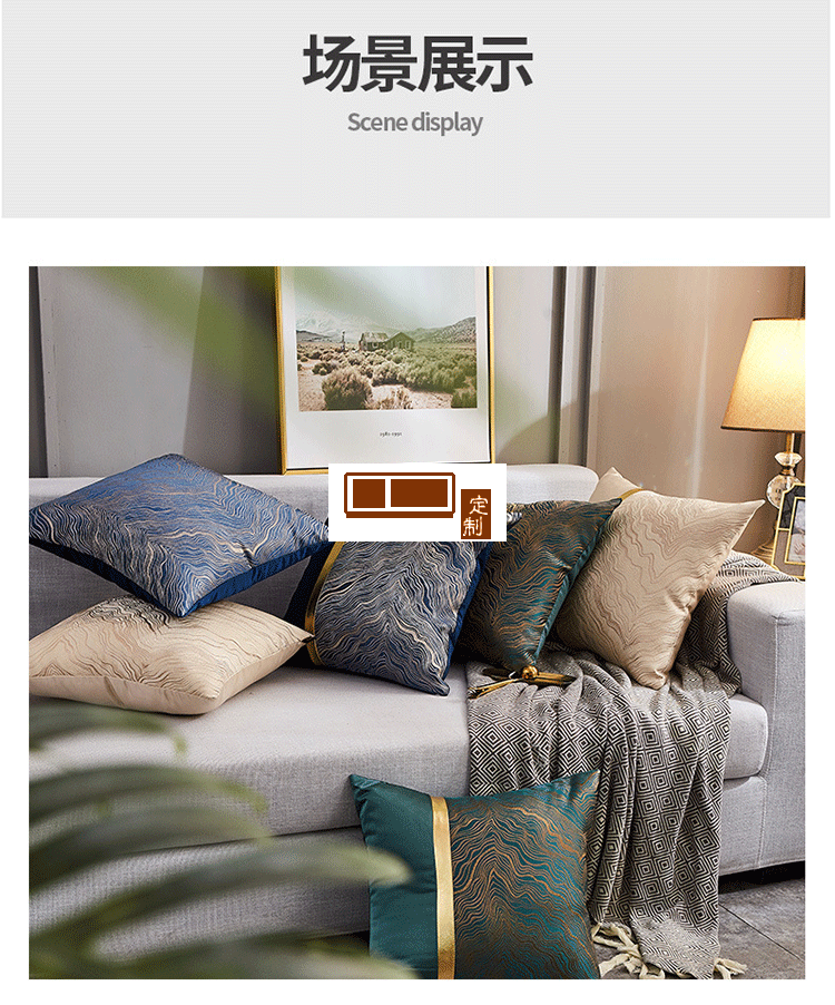 拼色金樣板房抱枕