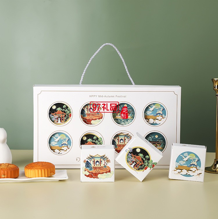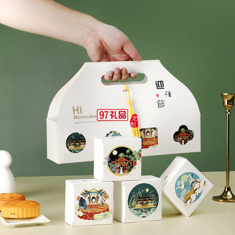 中秋禮盒手提式月餅包裝盒四粒裝節(jié)日禮盒定制